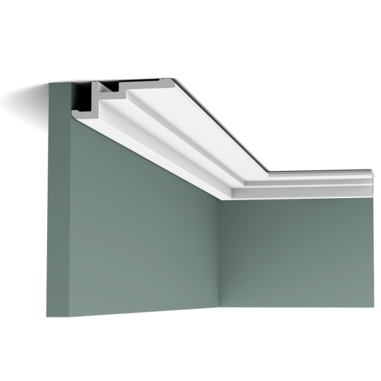 Profil CX196 schodkowy, o prostych krawędziach. Oparty na kultowym profilu U CX190. Montowany na części sufitowej lub ściennej.